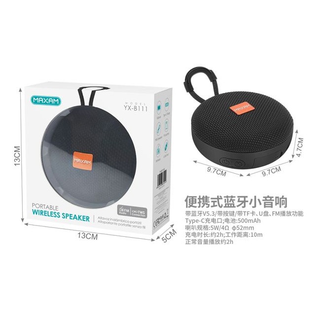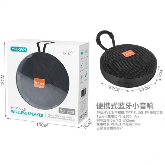 Altavoz portátil negro con bluetooth 5W*1 500mAh compatible con TWS, radio FM, TF/USB YX-B111
