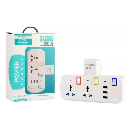 Multicontacto PL-501 con 3USB 2A 2 a corriente con Switch 3000w