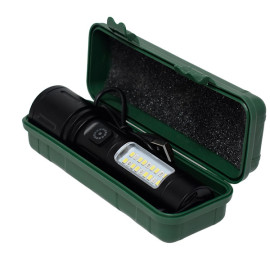 Linterna LED Recargable + COB y Zoom Cuerpo de Metal